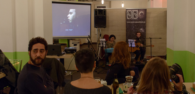 At the end of the installation photo gallery "ZYZ" including a tea and hot chocolate, Nazario Di Liberto and Roberta Arena performed live with songs from last album "STASI", and other new songs not yet released, tuning with the video installation "Metamorphosis". The metamorphosis project has the purpose of showing how the perception of reality may change if it were combined with music. The experiment video was made with the participation of Fabiana Fulvia Romano, Salvatore Di Liberto, Sonja Burgi, Denise Mucera, Geri Presti. Antonino Armetta has participated with an acting/recitation of a song.